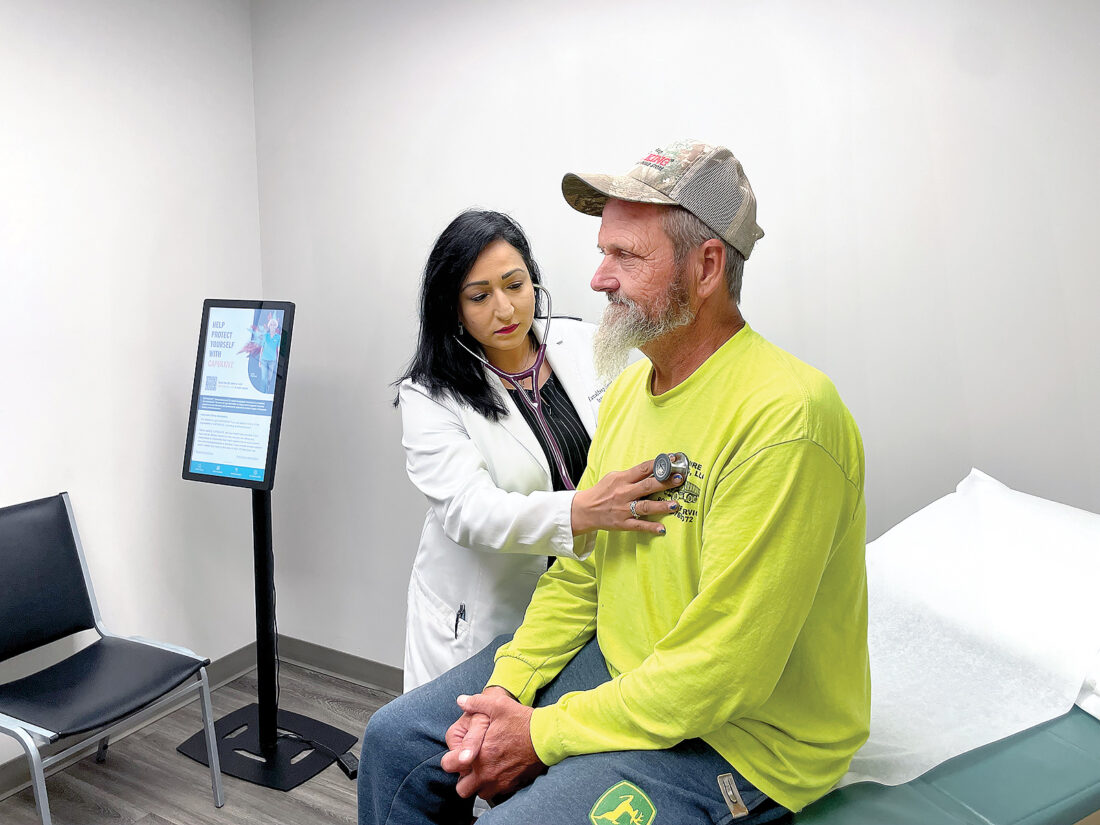 PATIENT EXAM — Paul Nitz of Steubenville visited the Ohio Valley Health Center on Wednesday morning, where he was examined by Dr. Kamaldeep Nandra, who began volunteering at the nonprofit a few months ago and working alongside her father, Dr. Charn Nandra, the center’s medical director. — Julie Stenger